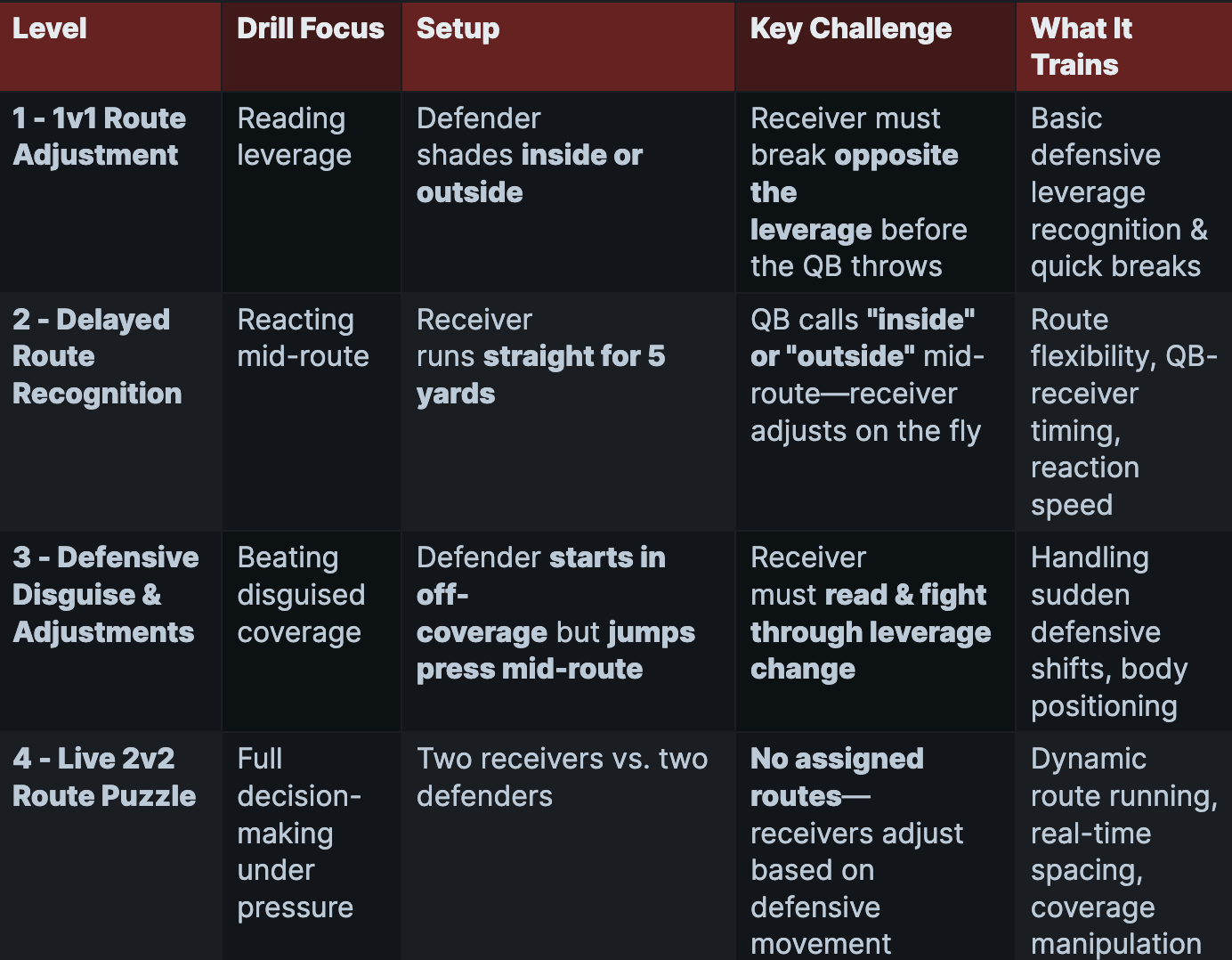Vary defensive alignments → Start defenders out of position, forcing them to adjust mid-play rather than react from a perfect stance.